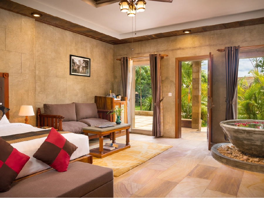 Just 5 km from the awe-inspiring Angkor Wat, Karma Bayon blends Cambodia’s timeless heritage with boutique comfort. Set along the peaceful riverside of Siem Reap, this elegant retreat invites you to immerse yourself in ancient wonders, lush tropical beauty, and warm Khmer hospitality.
