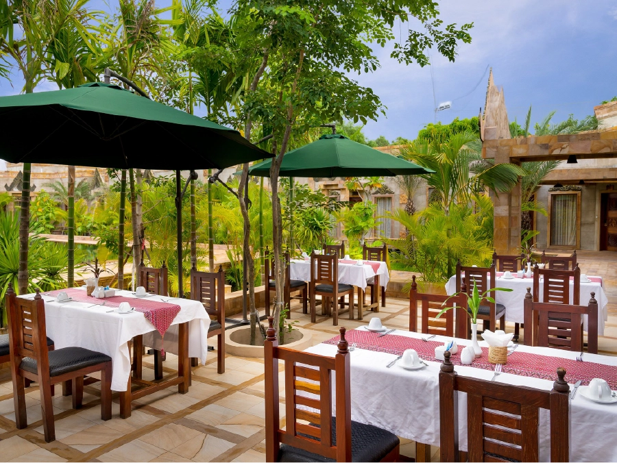 Step into a world where modern design meets traditional charm — unwind in spacious rooms with local touches, savour authentic Cambodian cuisine at our riverside restaurant, or relax by the tranquil pool surrounded by swaying palms. Whether you're exploring majestic ruins or enjoying a sunset cocktail, every moment at Karma Bayon is steeped in serenity and soul.