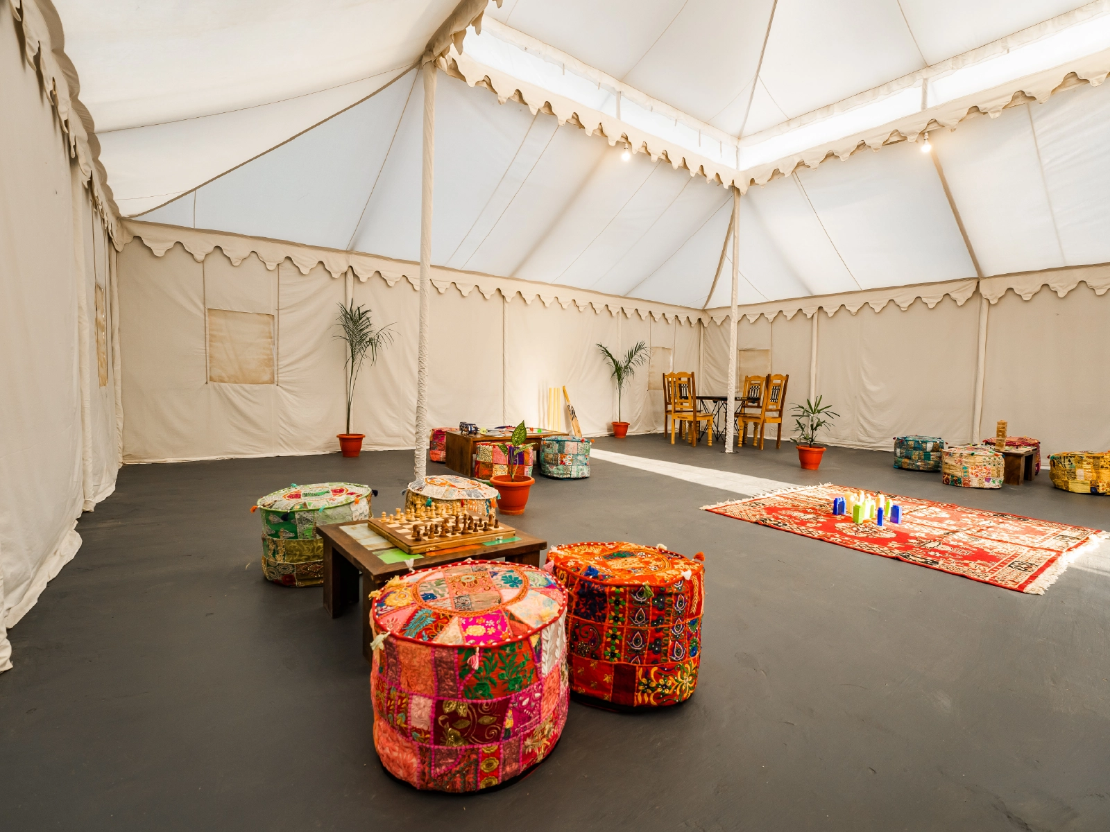 The all-day dining restaurant, Khejri, serves authentic Rajasthani cuisine inspired by the desert, crafted with locally sourced ingredients and traditional cooking techniques. For families, there are variety of engaging indoor activities, such as carrom, Jenga, pottery, glass painting, puppet making, and more.