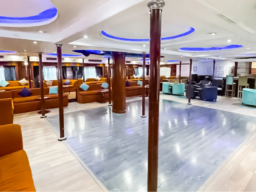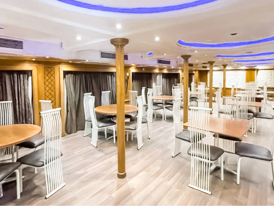 Onboard, indulge in a culinary journey with themed buffets and fusion dishes inspired by Mediterranean, North African, and Middle Eastern flavors, all served in the modern and spacious middle-deck restaurant. For a relaxing evening, head to the bar and lounge area to enjoy your favorite drink while taking in the breathtaking views.