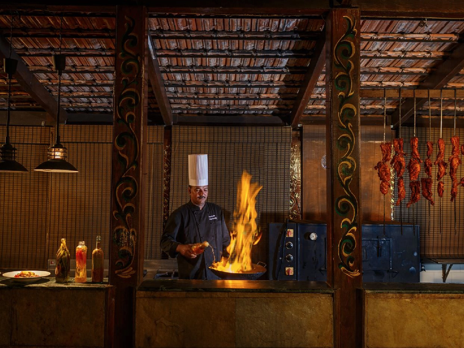 With a variety of dining options at Karma Royal Haathi Mahal, you are spoiled for choice. Relax at Splash Bar, our swim-up bar, serving signature mocktails, cocktails, ice-cold beers, and delicious poolside cuisine, including pizzas, burgers, and curries. Casa Lisboa, styled like a traditional Portuguese home, offers an exceptional menu featuring Portuguese/Goan, Indian, and European dishes. At Attwood’s Bar, a classic English pub setting, you can enjoy live sports, a game of pool, or simply unwind with fellow guests.